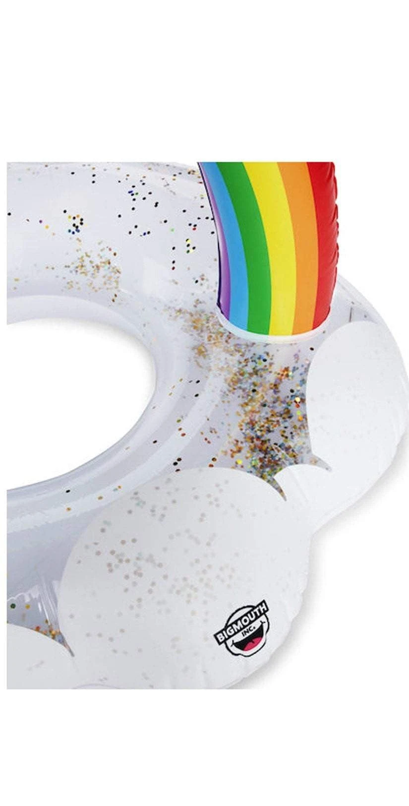 The Big Mouth Giant Rainbow Cloud Pool Float is a large, bright, fun rainbow cloud to lounge and relax on. The cloud is infused with bold colorful glitter so when its in the sunlight it shimmers and shines just like you!