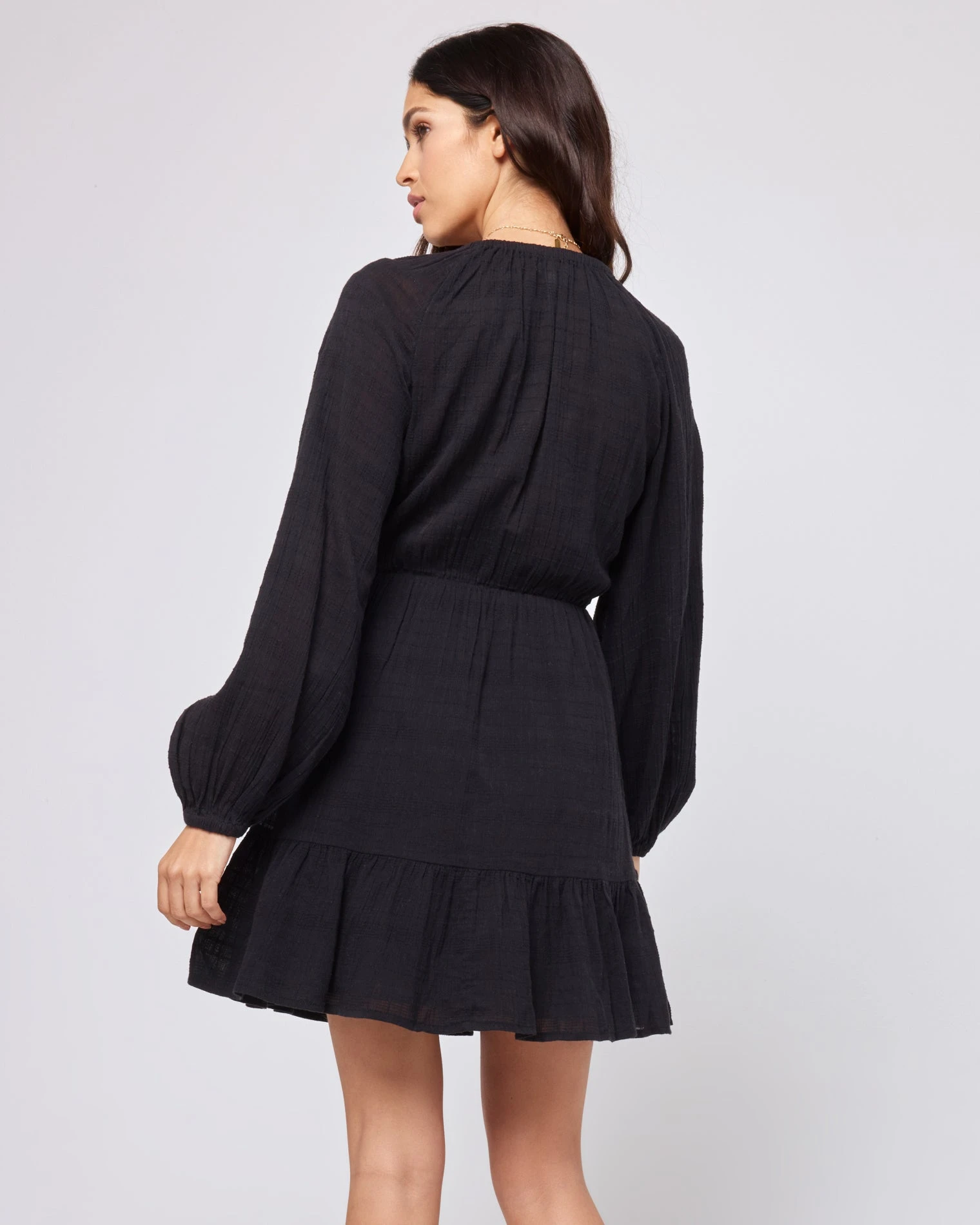 Stand out and feel good in the Feelin’ Fine Dress. This easy wear mini dress in plaid with self-drawcord is designed with a raglan sleeve, tier with shirring and cutouts in the front.