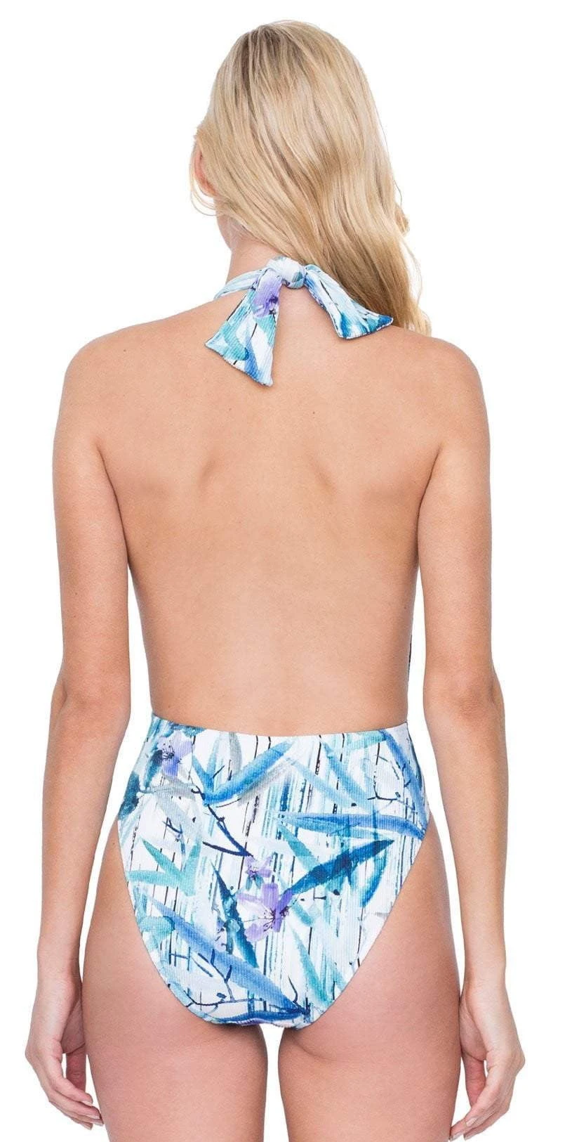 The Gottex Exotic Paradise Deep Plunge One Piece has a super sexy open back with a plunging v neck front. This one piece has a high thigh to elongate and accent.