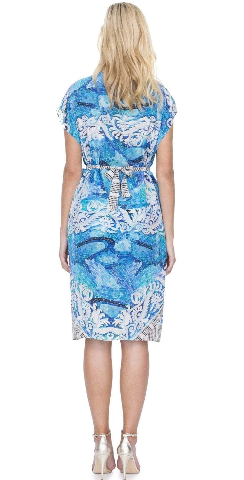 The Gottex Felicity Kimono with Sleeves is a lightweight cover-up with tones of neutral colors and blend of purple and blue. This unique kimono falls at the knee and features short sleeves.