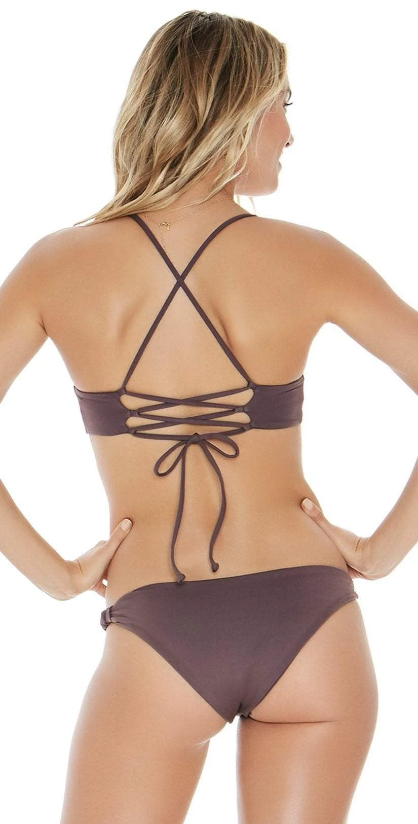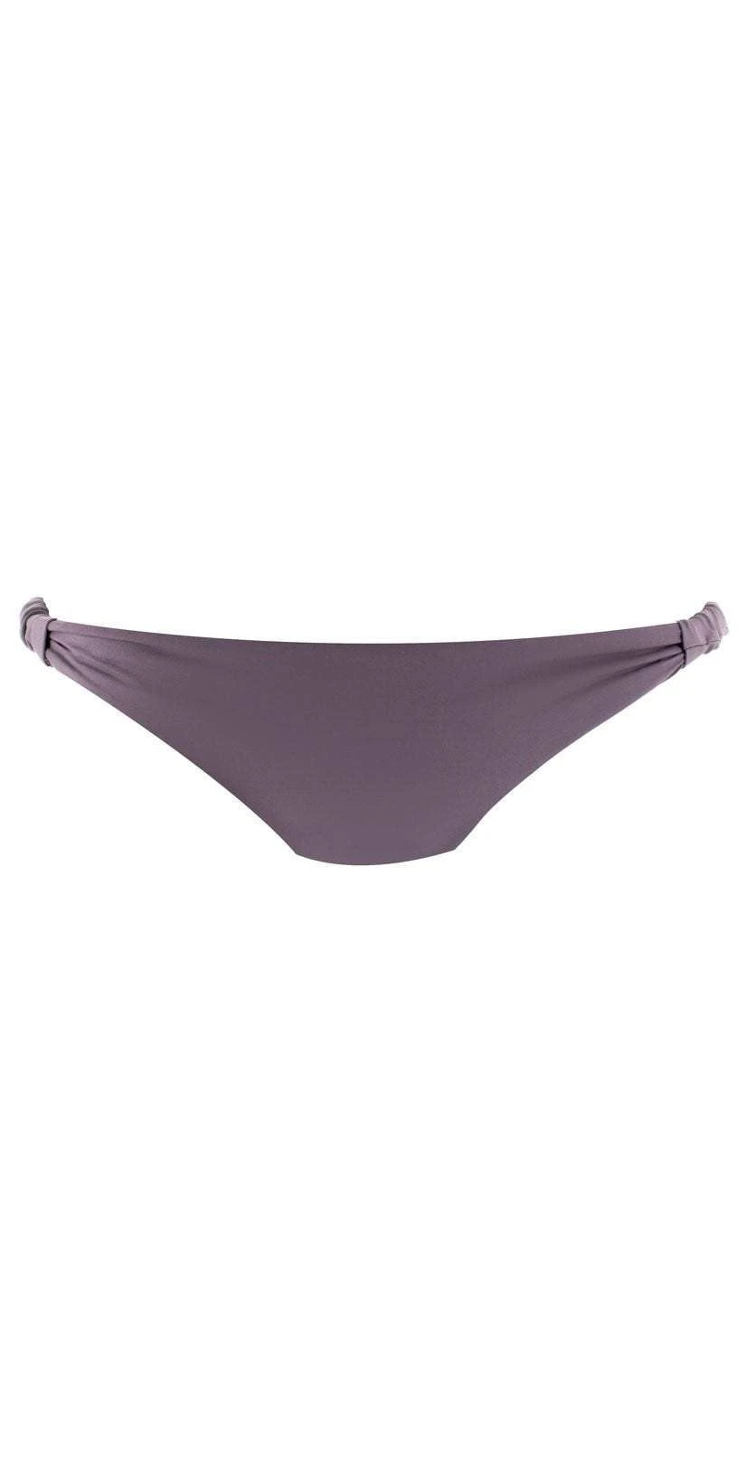 The L Space Sundrop Bitsy Bottom In Pebble is a dusty purple colored bottom that has two sliding side tabs at the hips to modify your back coverage. Separate the tabs apart when you want a cheekier look and bring the tabs together for more coverage. Pair with the L Space Olivia Bralette Top in Pebble.