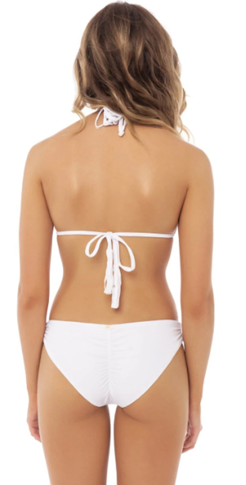 The PilyQ WaterLily Basic Full Cut Bikini Bottom is beach essential! This solid white hipster bottom that features a full cut design with a ruched back for a slightly cheeky, flirty look. This bottom offers a seamless design and a fuller cut bottom. Pair with your favorite Water Lily Top!