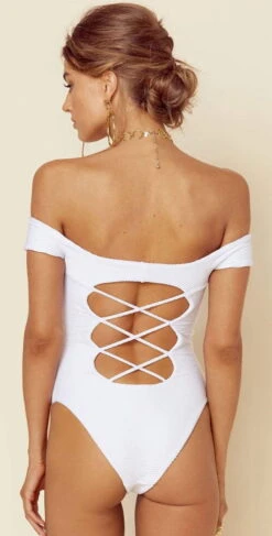 Blue Life Off Shoulder One Piece In White Jacquard 390-9466-WHT