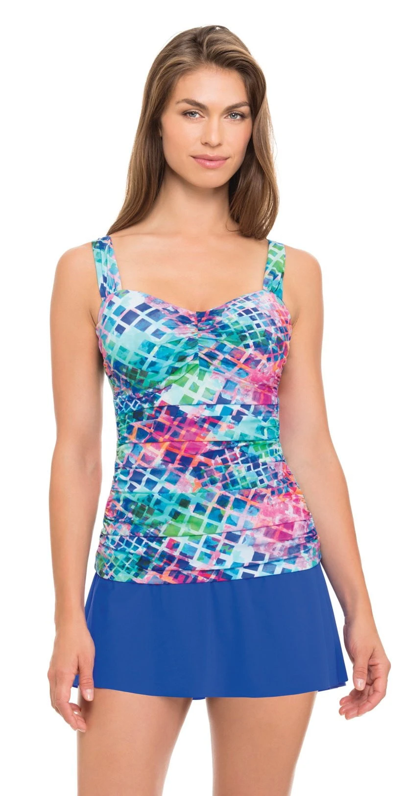 Profile by Gottex Song Bird Underwire Tankini top features thick adjustable shoulder straps and supportive underwire with a hook bra closure. This top is available in a D-cup and E-cup