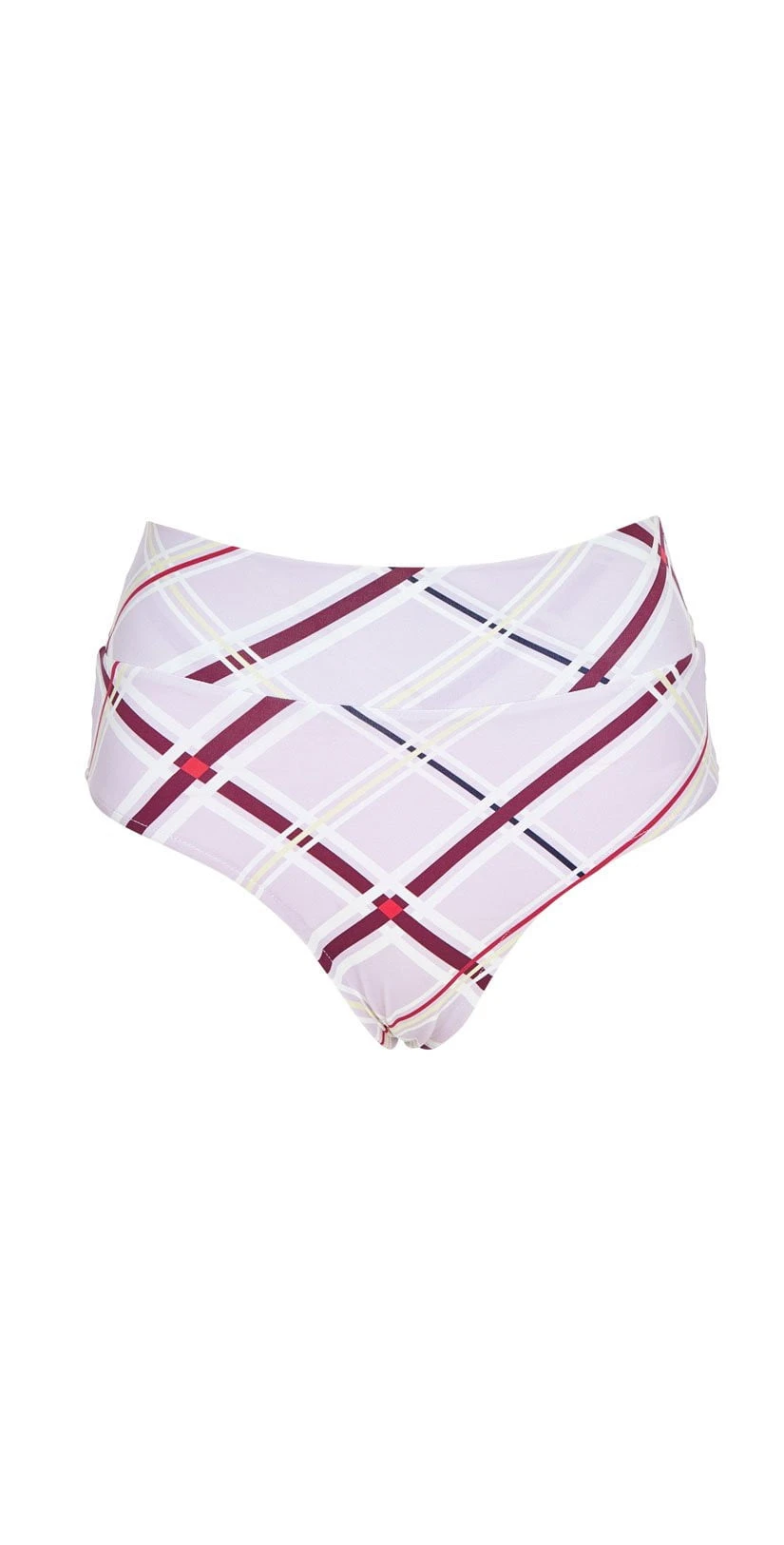 The Henley Bottom adds a modern twist to high waist bikini bottom with lace-up ties in the back. These bottoms feature a silver grommet detail and are made with luxurious textured swimwear fabric.